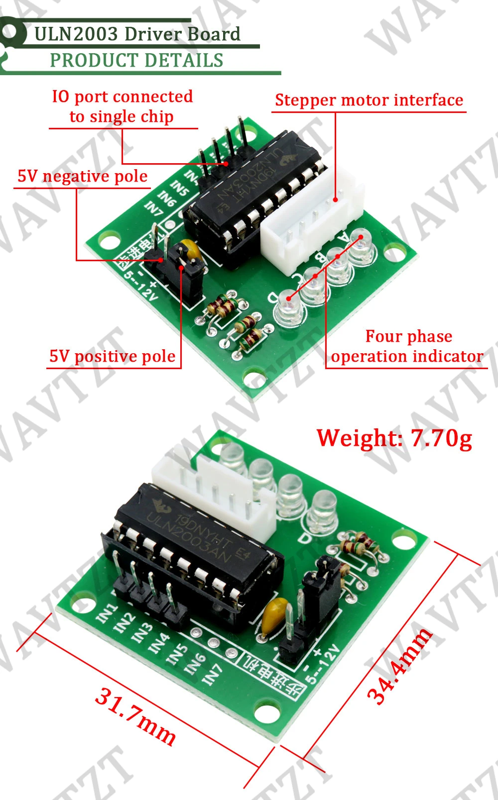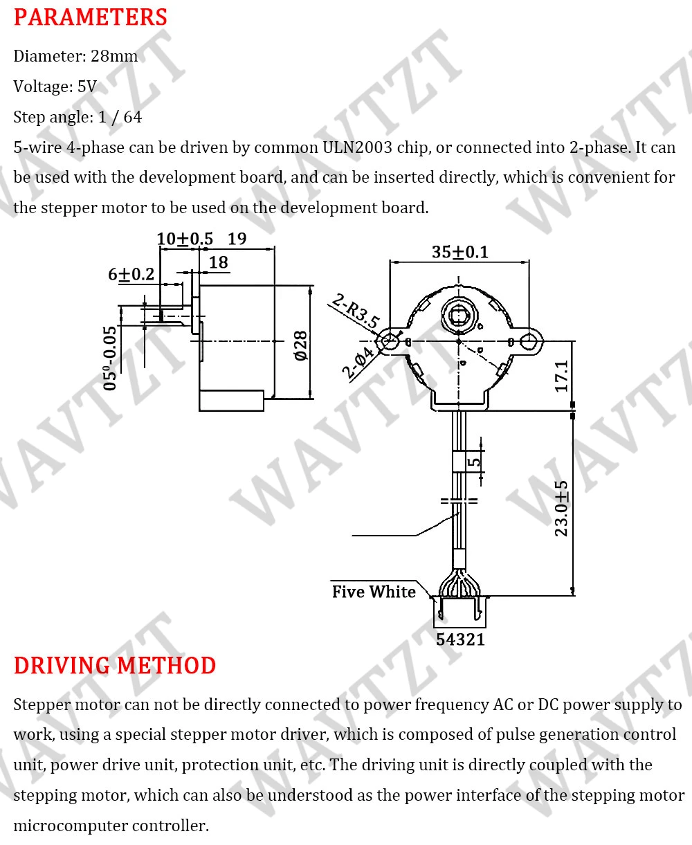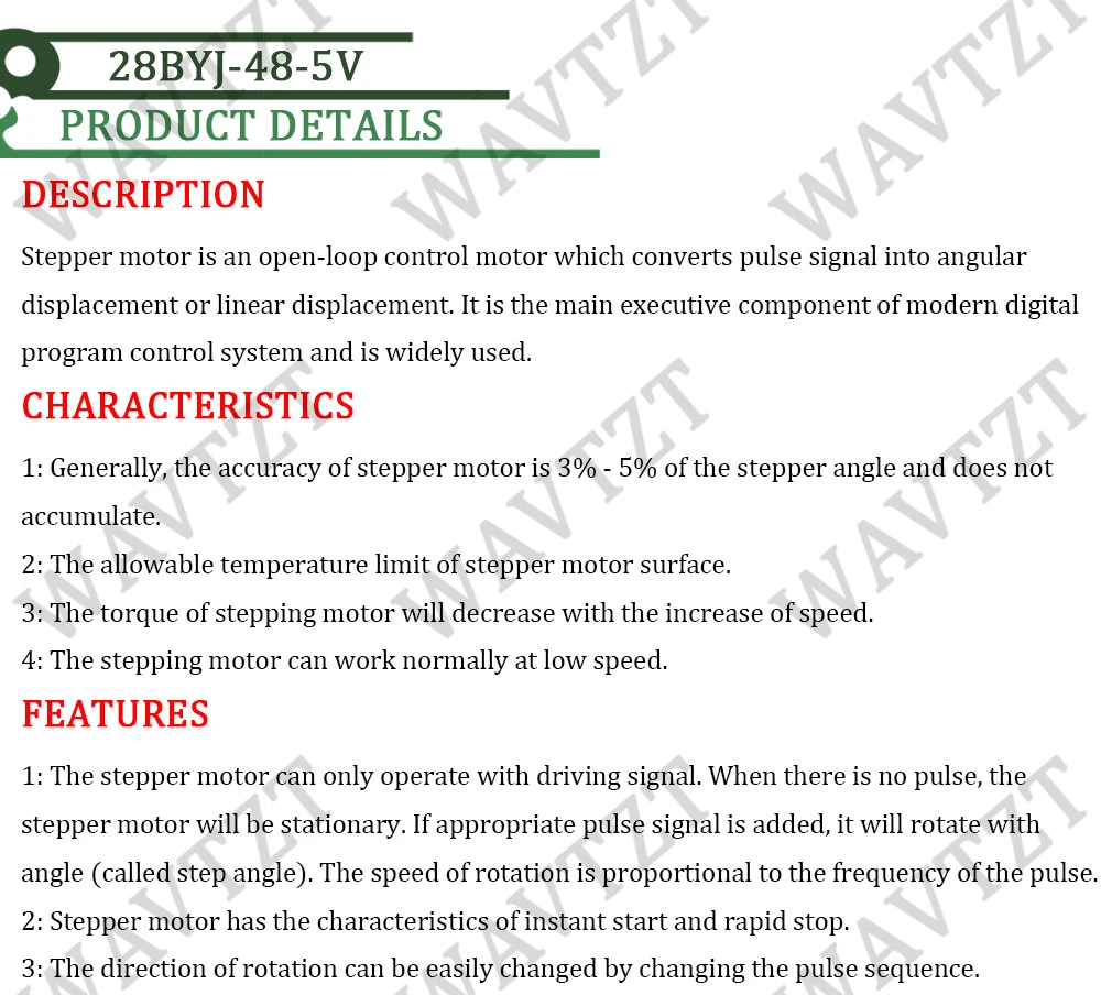 WAVTZT DC 5V 28BYJ-48 moteur pas à pas pour Arduino