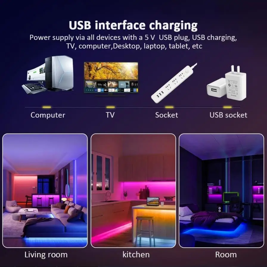 Tuya WIFI USB LED bandes lumineuses APP contrôle couleur changeante 5050 RGB lumière LED bande de lampe Flexible pour la décoration de la pièce TV rétro-éclairage Diode fonctionne avec Alexa Google Assistant