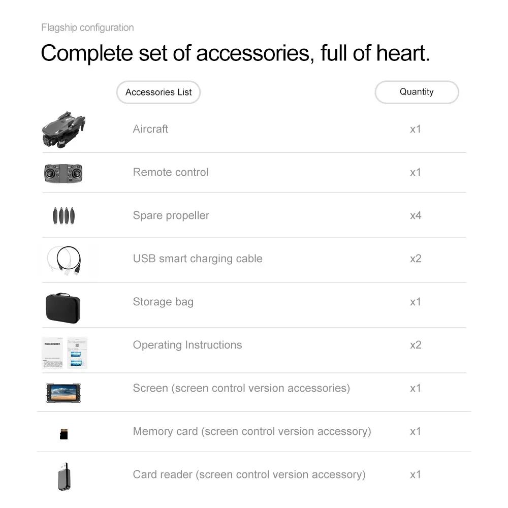 9 : Fonction de version de contrôle d’écran : écran d’affichage indépendant, avec caméra arrière, prise en charge de la fonction photo et vidéo (peut être utilisé comme appareil photo pour enfants), prise en charge de la transmission d’images en temps réel d’images aériennes, équipé d’une carte mémoire et d’un lecteur de carte.