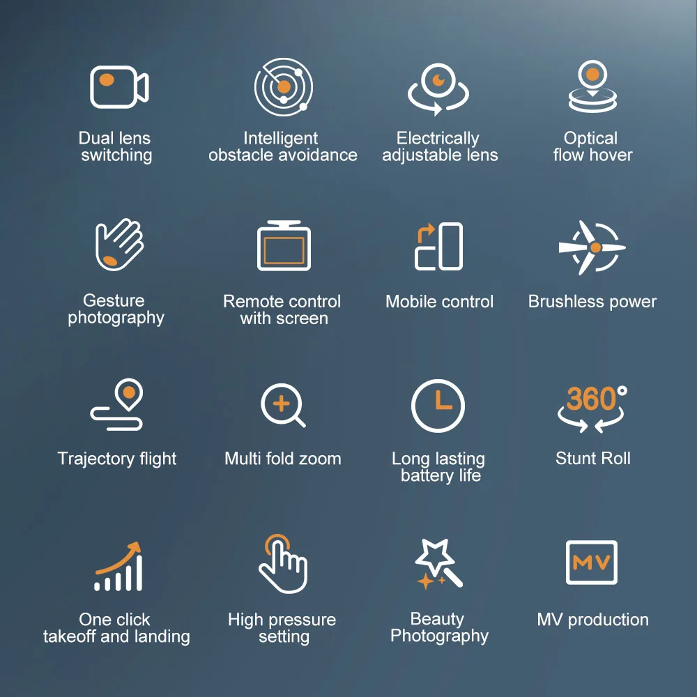 5.Mode sans tête contrôlé par application avec montée et descente, avant et arrière et vol côte à côte.