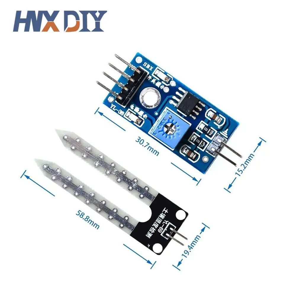 Les sorties numériques D0 petites plaques peuvent être connectées directement au microcontrôleur via le microcontrôleur pour détecter haut et bas, détectant ainsi l’humidité du sol;