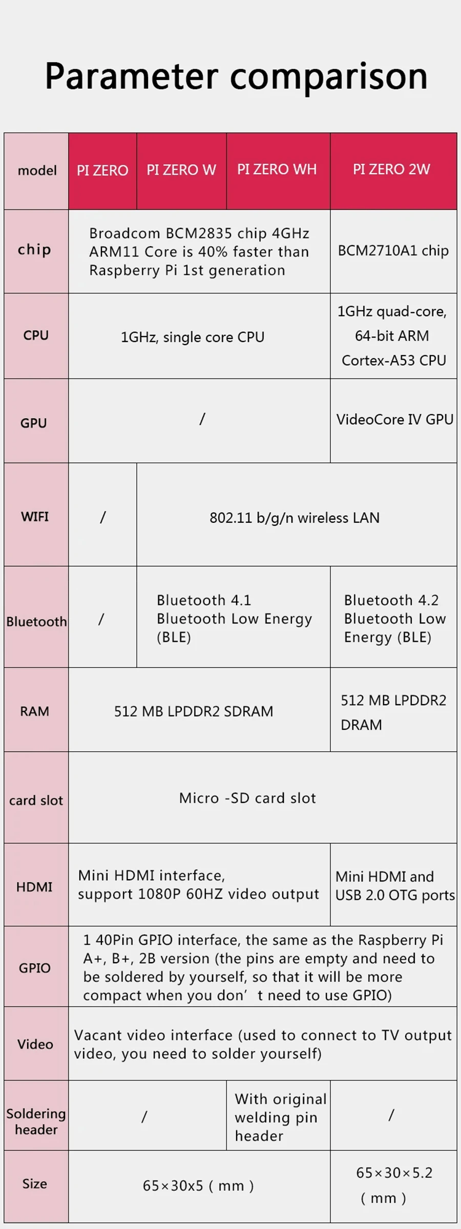 - CPU Processor: 1GHz quad-core 64-bit ARM Cortex-A53