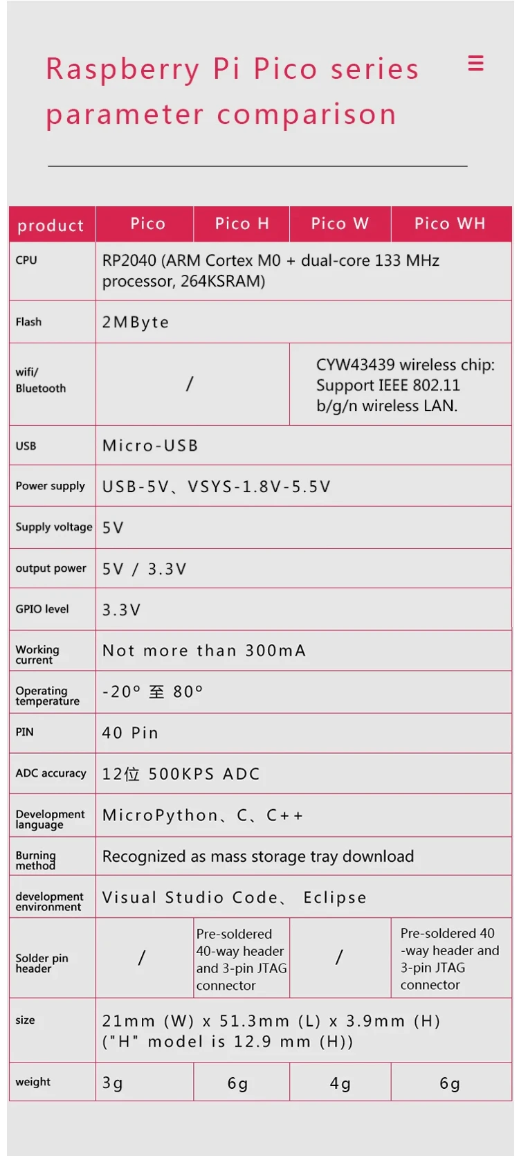 | Numéro de Modèle | Raspberry Pi Pico Series |